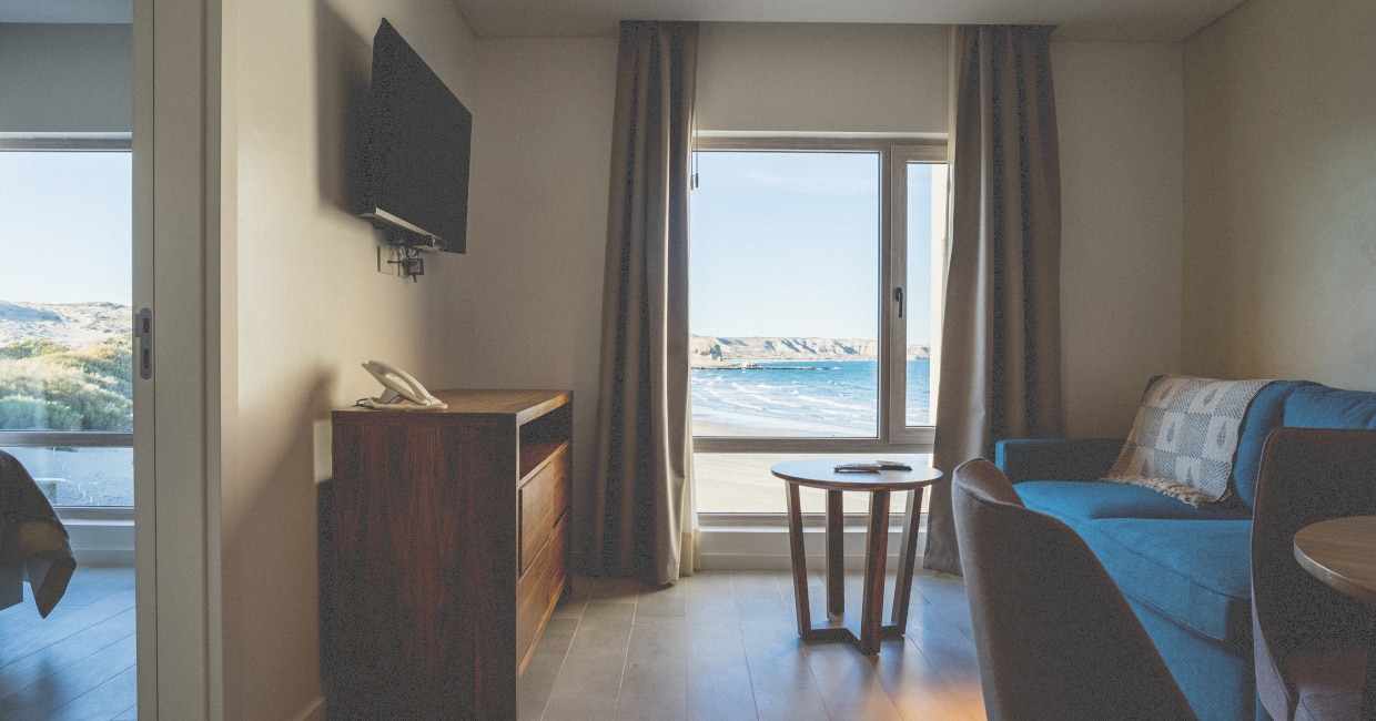 Categoría más amplia, con 38m² tiene una terraza trasera compartida con vistas al mar y al Golfo Nuevo. Incluye 2 camas individuales (0,80 x 200 m) que se convierten en matrimonial y un sofá cama, ideal para matrimonios con niños menores de 12 años. Con diseño moderno, ofrece tranquilidad y una mayor conexión con la naturaleza.